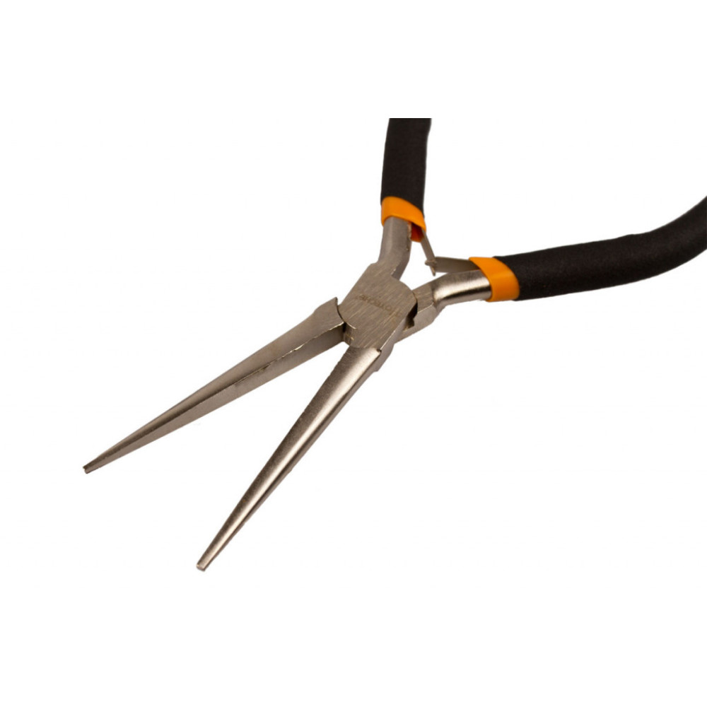 Polkruhové kliešte 150 mm bez rezných hrán a s dĺžkou čeľustí 50 mm. Presné kliešte sú vyrobené z vysoko uhlíkovej ocele. Rukoväť je potiahnutá mäkkým PVC návlekom s protišmykovým účinkom. Vďaka tomu sa kliešte dobre držia v ruke a ľahko sa s nimi manipuluje.