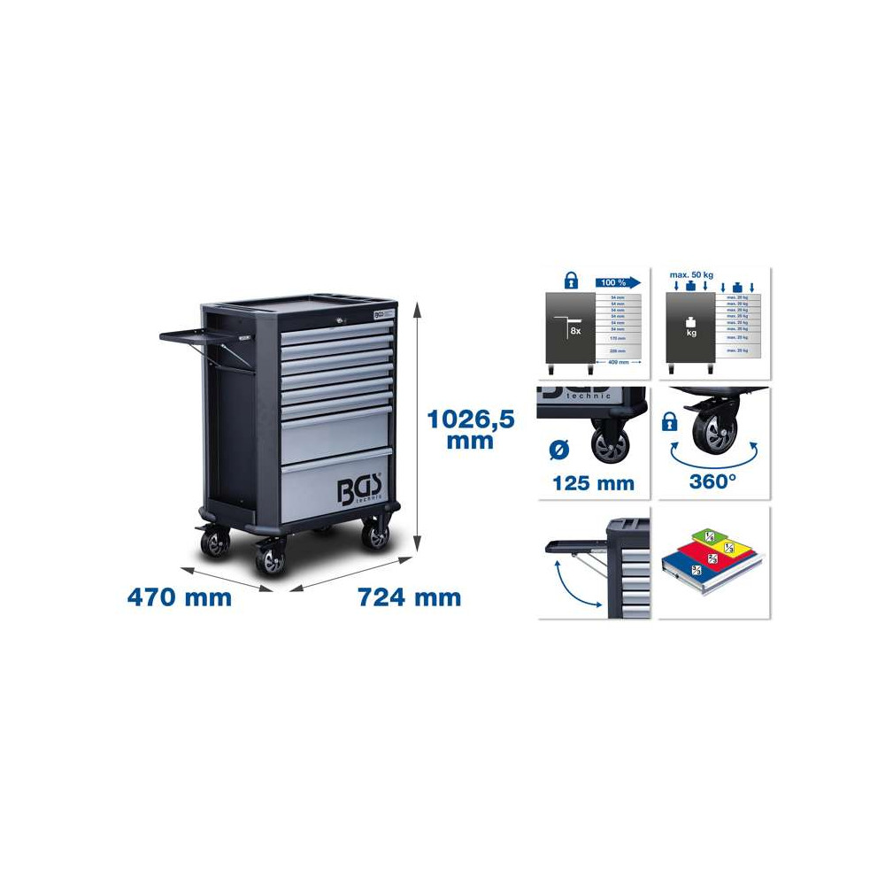 Pojazdný náraďový vozík BGS technic s 8 zásuvkami a 296 ks náradia