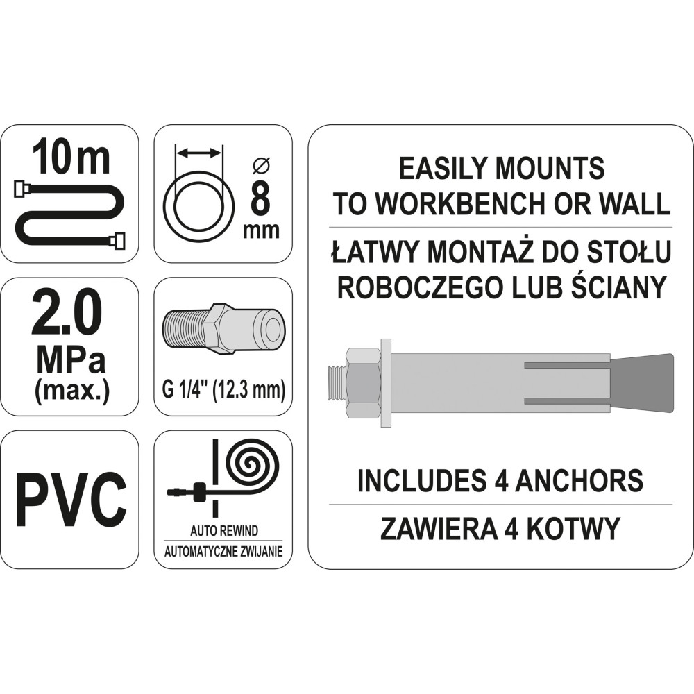 Naviják automatický se vzduchovou hadicí 8 mm, 10m